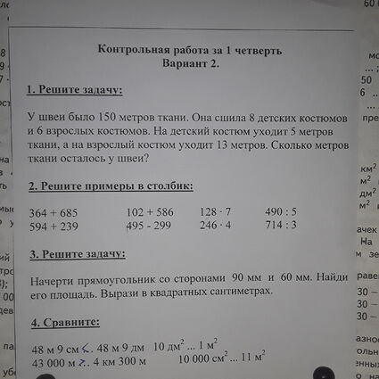 У швеи было 150 метров ткани.Она сшила 8 детских костюмов и 6 взрослых костюмов.На детский костюм уходит 5 метров ткани,а на взрослый костюм уходит 13 метров.Сколько метров ткани осталось у швеи?